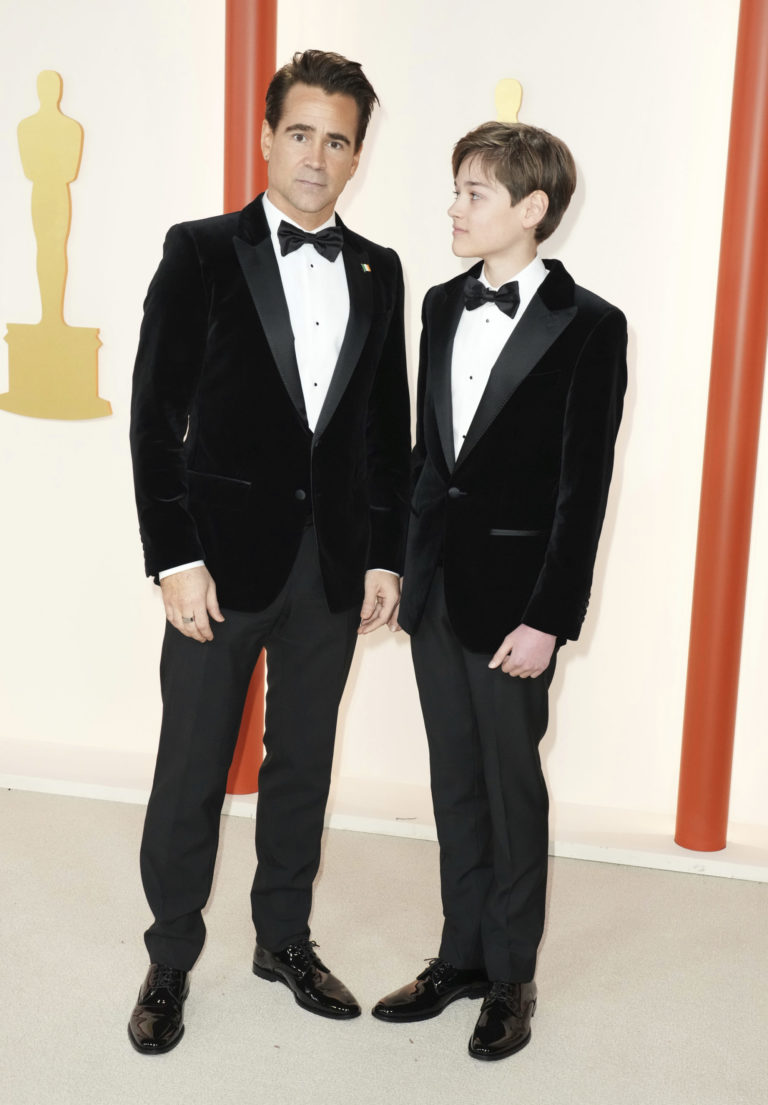Colin Farrell a Henry Tadeusz Farrell počas príchodu na 95. ročník udeľovania cien americkej Akadémie filmových umení a vied (Oscar 2023). Los Angeles (Dolby Theatre), 12. marec 2023. Foto: Jordan Strauss/Invision/AP.