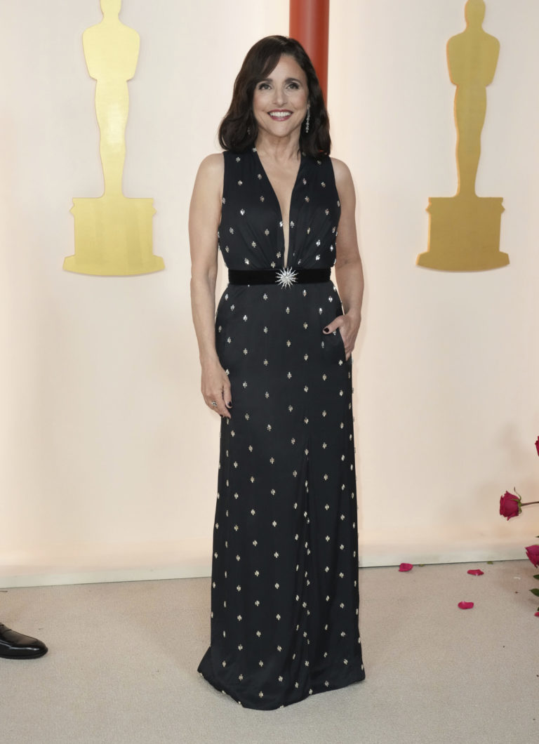 Julia Louis-Dreyfus počas príchodu na 95. ročník udeľovania cien americkej Akadémie filmových umení a vied (Oscar 2023). Los Angeles (Dolby Theatre), 12. marec 2023. Foto: Jordan Strauss/Invision/AP.