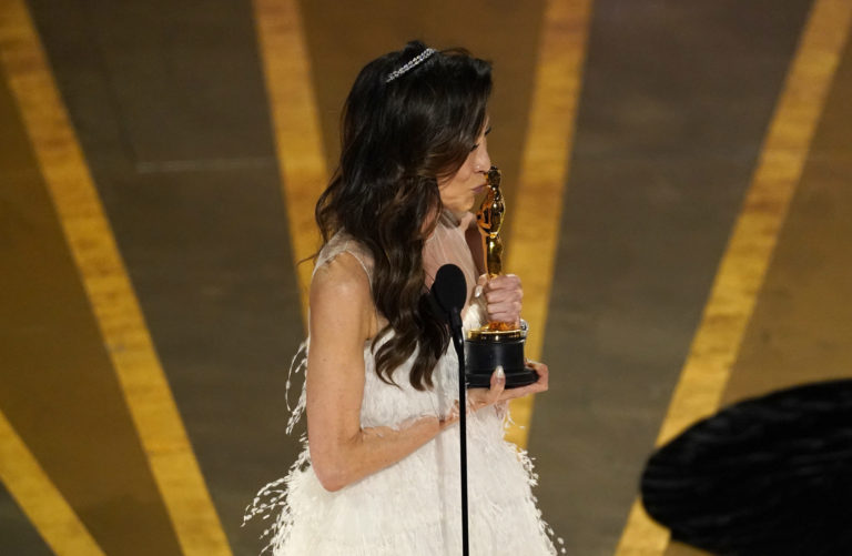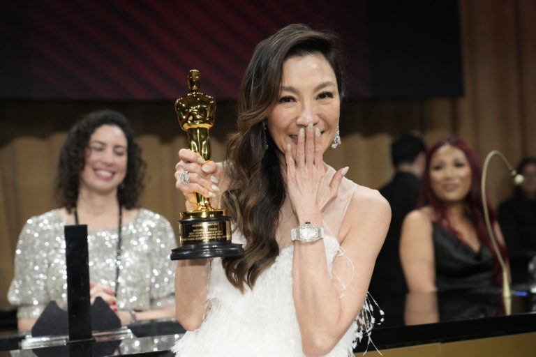 Michelle Yeoh počas 95. ročníka udeľovania cien americkej Akadémie filmových umení a vied (Oscar 2023). Los Angeles (Dolby Theatre), 12. marec 2023. Foto: SITA/AP.