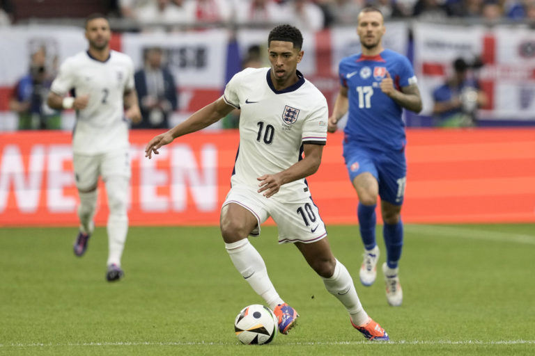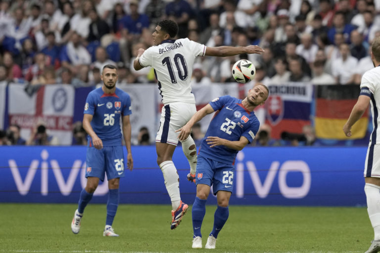 Anglický reprezentant Jude Bellingham počas osemfinálového zápasu proti Slovensku na ME vo futbale 2024. Gelsenkirchen, 30. jún 2024. Foto: SITA/AP.