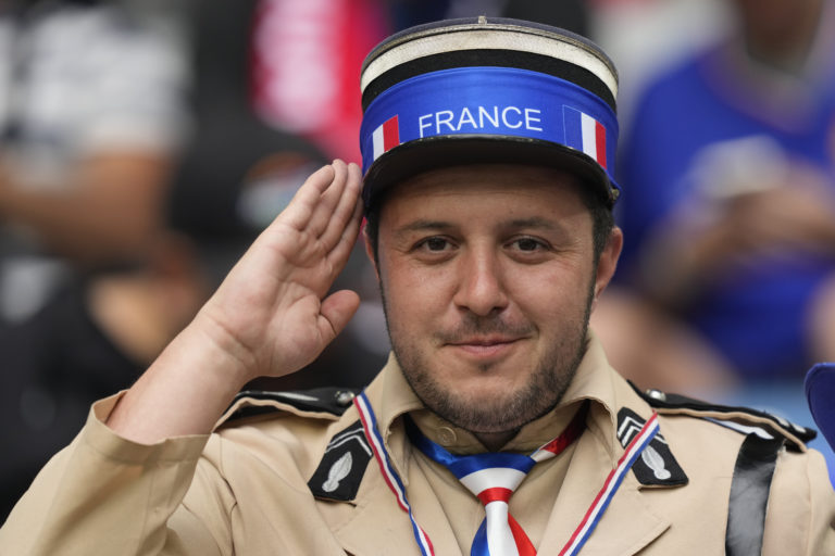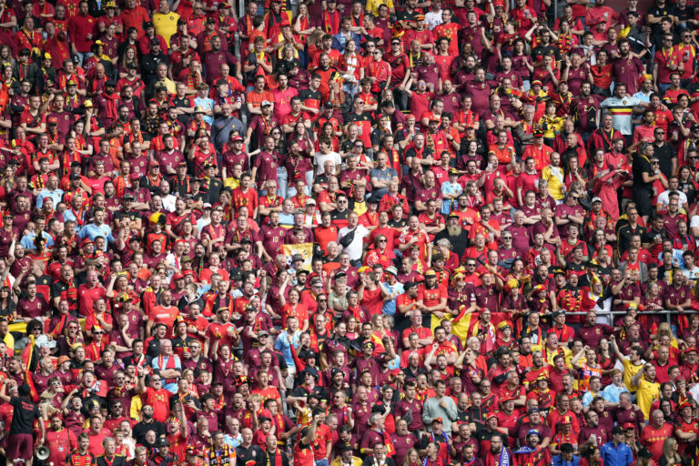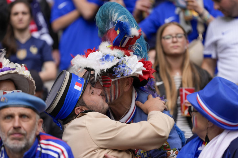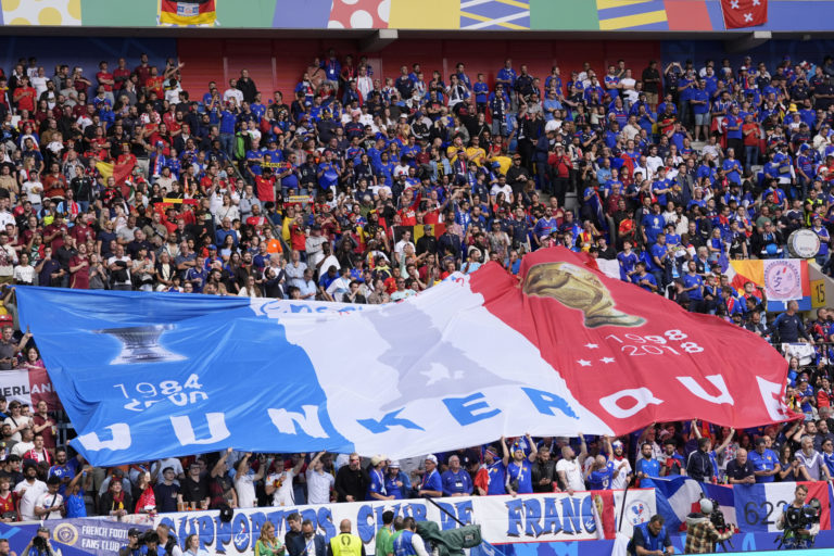 Fanúšikovia počas osemfinálového zápasu Francúzsko - Belgicko na ME vo futbale 2024. Düsseldorf, 1. júl 2024. Foto: SITA/AP.