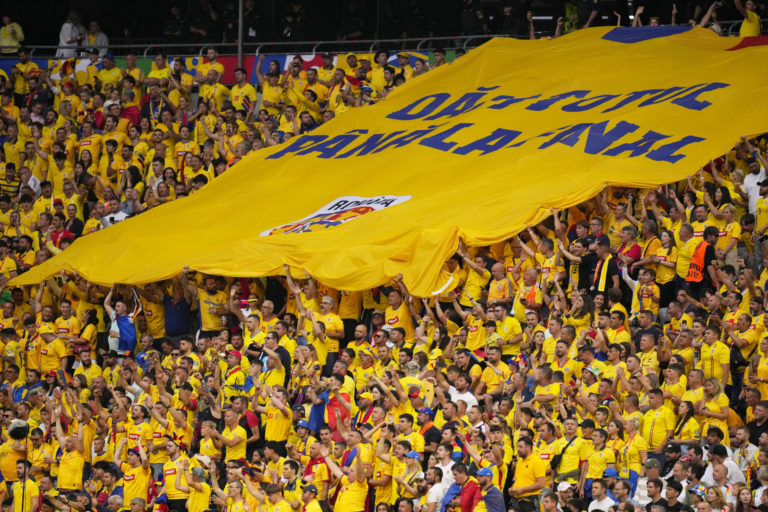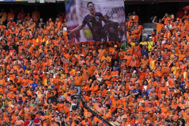 Fanúšikovia počas osemfinálového osemfinálového zápasu medzi Rumunskom a Holandskom na ME vo futbale 2024. Mníchov, 2. júl 2024. Foto: SITA/AP.