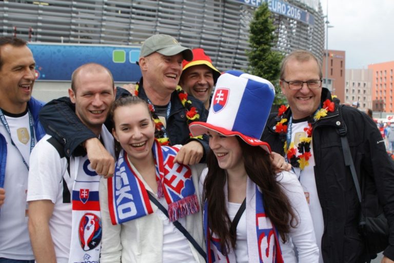 Fanúšikovia Slovenska počas osemfinálového zápasu proti Nemecku na európskom šampionáte. Lille, 26. jún 2016. Foto: SITA/Rastislav Blaško