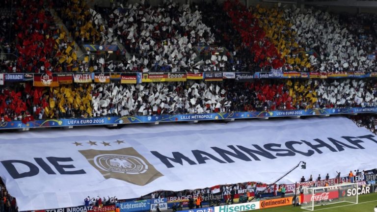 Fanúšikovia Nemecka počas osemfinálového zápasu proti Slovensku na európskom šampionáte. Lille, 26. jún 2016. Foto: SITA/AP