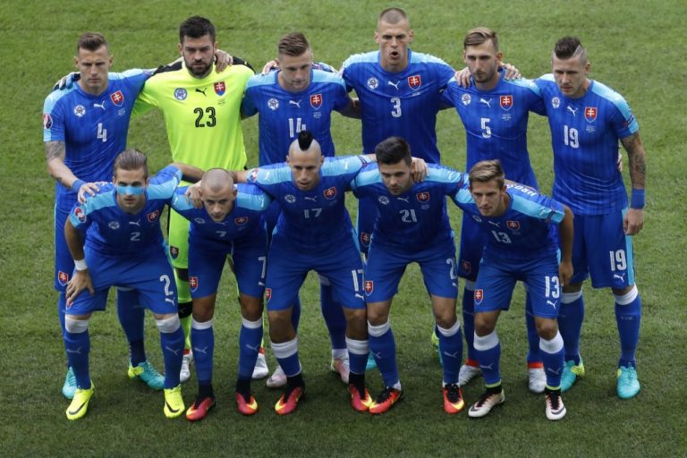 Slovenskí futbalisti pred zápasom proti Nemcom na európskom šampionáte. Lille, 26. jún 2016. Foto: SITA/AP