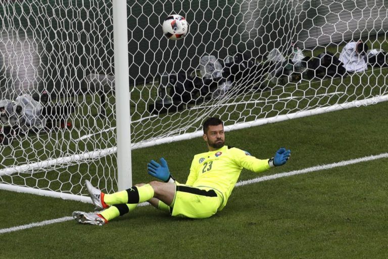 Smutný slovenský brankár Matúš Kozáčik po góle Nemca Maria Gómeza počas osemfinálového zápasu na majstrovstvách Európy. Lille, 26. jún 2016. Foto: SITA/AP