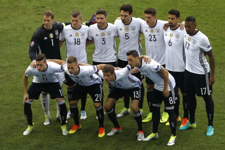 Nemeckí futbalisti pred zápasom proti Slovákom na európskom šampionáte. Lille, 26. jún 2016. Foto: SITA/AP