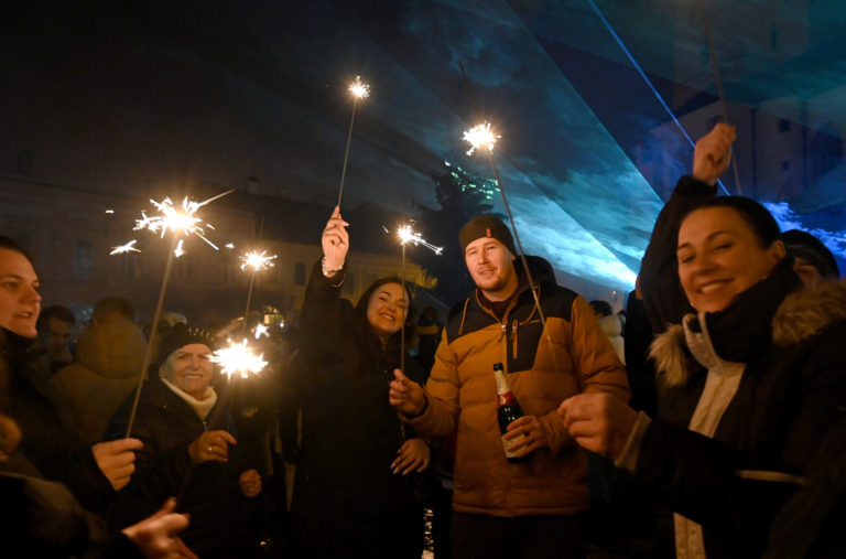 Atmosféra počas osláv príchodu Nového roka v Prešove. Prešov 1. január 2024. Foto: SITA/Viktor Zamborský