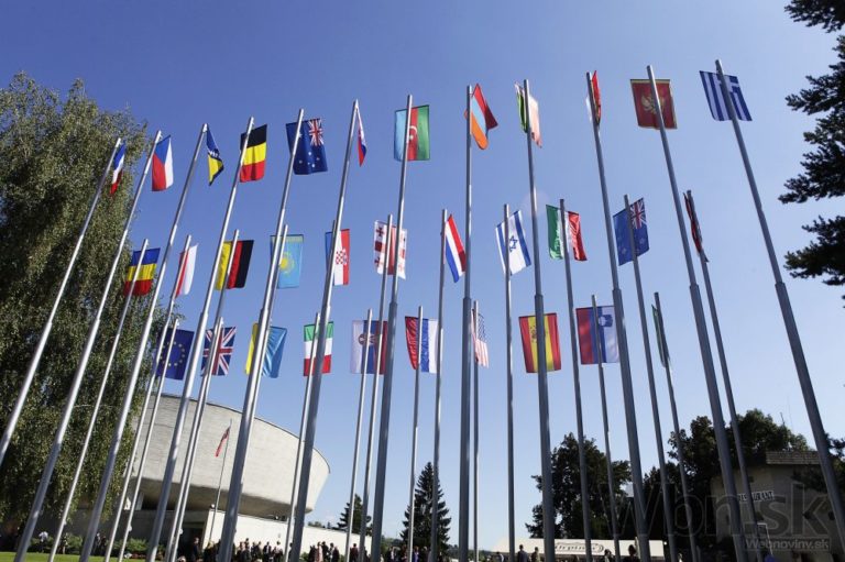 Slovenská vlajka pri Pamätníku SNP v rámci centrálnych osláv 70. výročia Slovenského národného povstania. Banská Bystrica, 29. august 2014. Foto: SITA/Ján Viazanička
