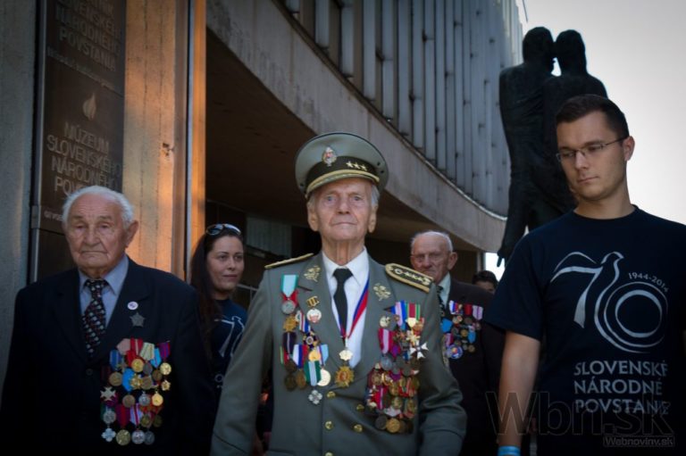 Pamätníci Slovenského národného povstania (uprostred) počas osláv 70. výročia SNP. Banská Bystrica, 29. august 2014. Foto: SITA/Ľudovít Vaniher