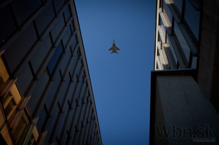 Prelet stíhačky MIG-29 nad múzeom SNP počas osláv 70. výročia SNP. Banská Bystrica, 29. august 2014. Foto: SITA/Ľudovít Vaniher
