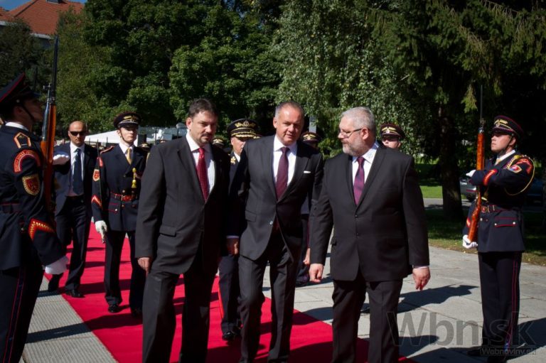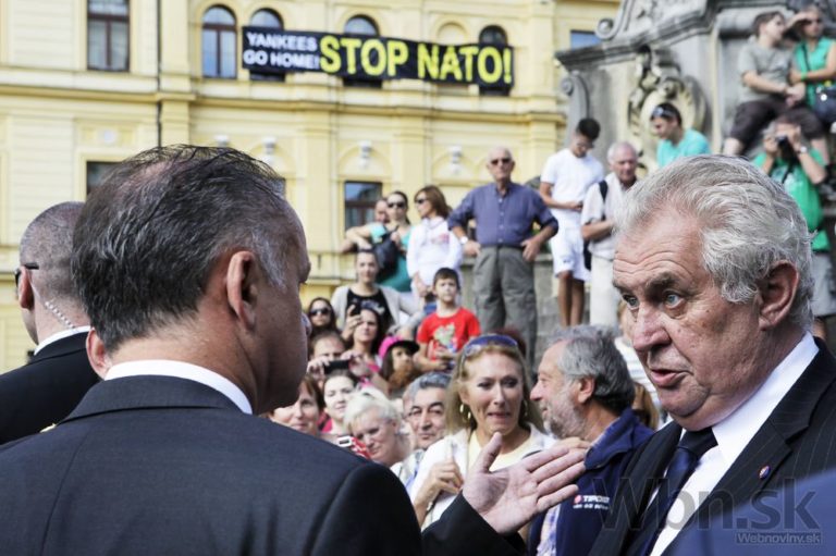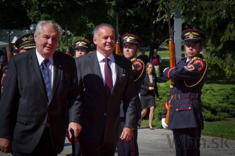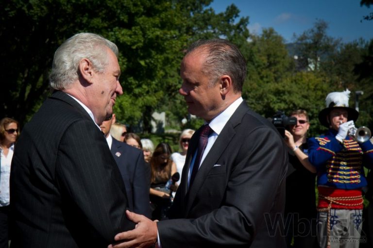 Zľava: Prezidenta ČR Miloša Zemana víta prezident SR Andrej Kiska počas osláv 70. výročia SNP. Banská Bystrica, 29. august 2014. Foto: SITA/Ľudovít Vaniher
