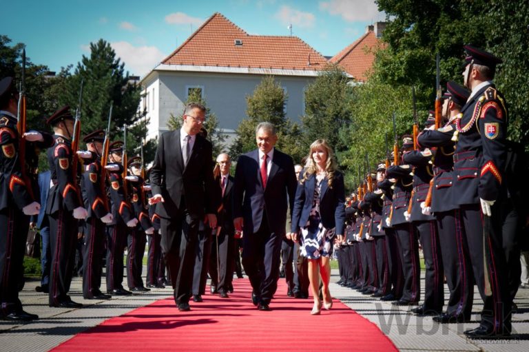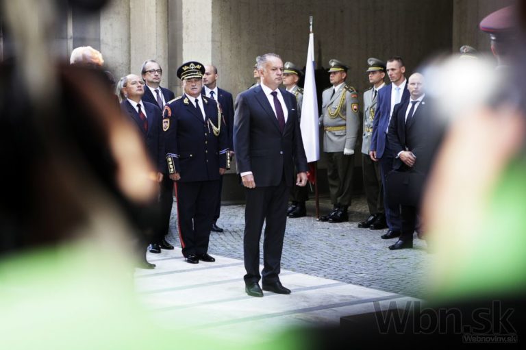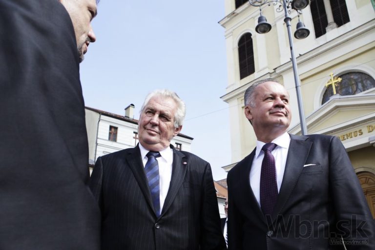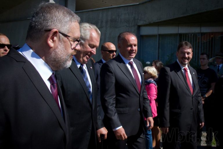 Zľava: Prezident ČR Miloš Zeman a prezident SR Andrej Kiska prichádzajú na oslávy 70. výročia SNP. Banská Bystrica, 29. august 2014. Foto: SITA/Ľudovít Vaniher
