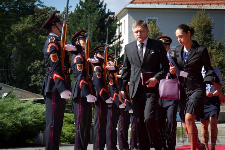 Predseda vlády SR Robert Fico (druhý sprava) prichádza na oslávy 70. výročia SNP. Banská Bystrica, 29. august 2014. Foto: SITA/Ľudovít Vaniher