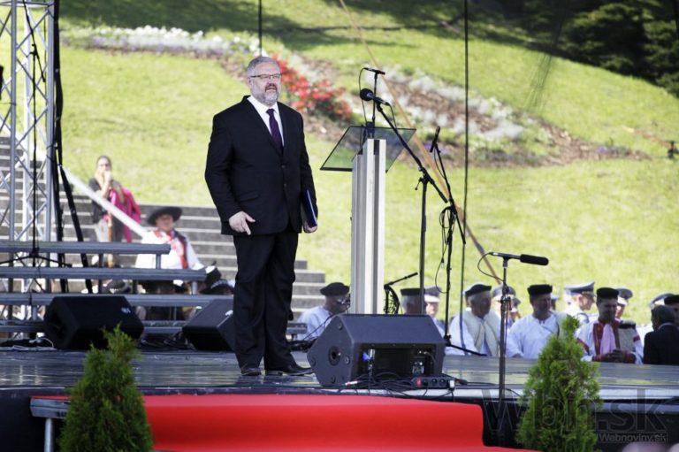 Riaditeľ múzea SNP Stanislav Mičev počas príhovorov pri Pamätníku SNP v rámci centrálnych osláv 70. výročia Slovenského národného povstania. Banská Bystrica, 29. august 2014. Foto: SITA/Ján Viazanička