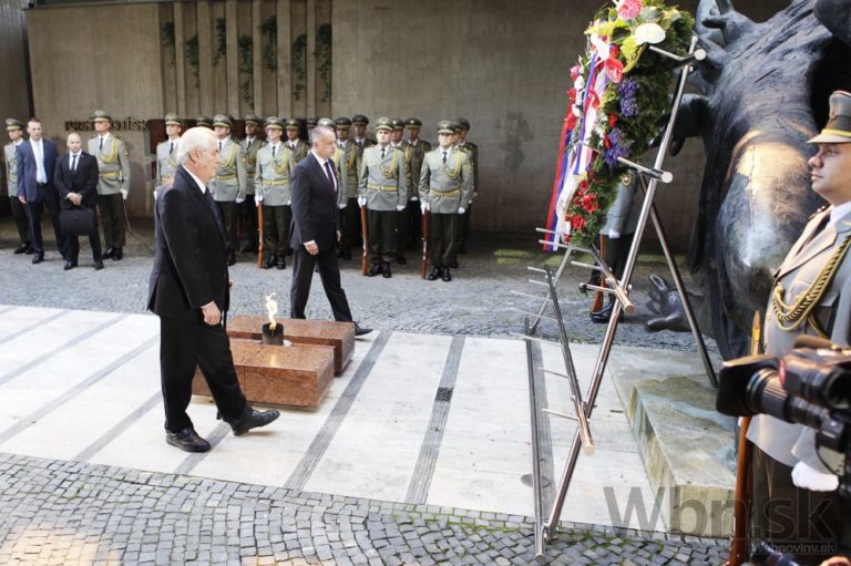 Prezident SR Andrej Kiska (uprostred) počas pietneho aktu kladenia venco pri Pamätníku SNP v rámci centrálnych osláv 70. výročia Slovenského národného povstania. Banská Bystrica, 29. august 2014. Foto: SITA/Ján Viazanička