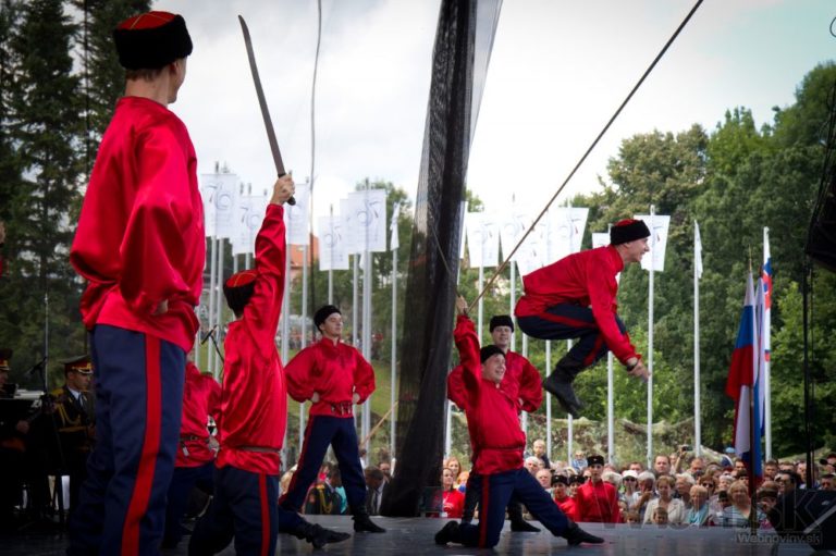 Úcastníci programu osláv 70. výročia Slovenského národného povstania v areáli Múzea SNP. Banská Bystrica, 29. august 2014. Foto: SITA/Ján Viazanička