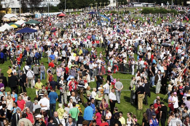 Návštevníci osláv 70. výročia Slovenského národného povstania v areáli Múzea SNP. Banská Bystrica, 29. august 2014. Foto: SITA/Ján Viazanička