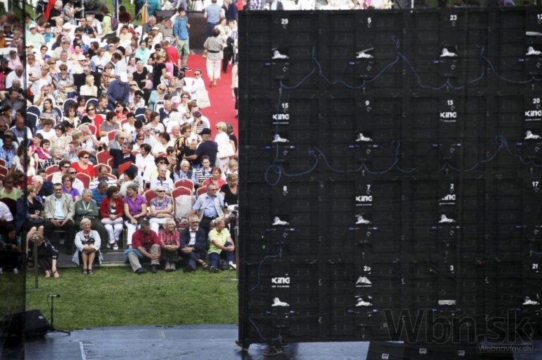 Diváci sledujú vystúpenie ruského zboru Alexandrovci počas kultúrneho programu na oslavách 70. výročia SNP. Banská Bystrica, 29. august 2014. Foto: SITA/Ľudovít Vaniher