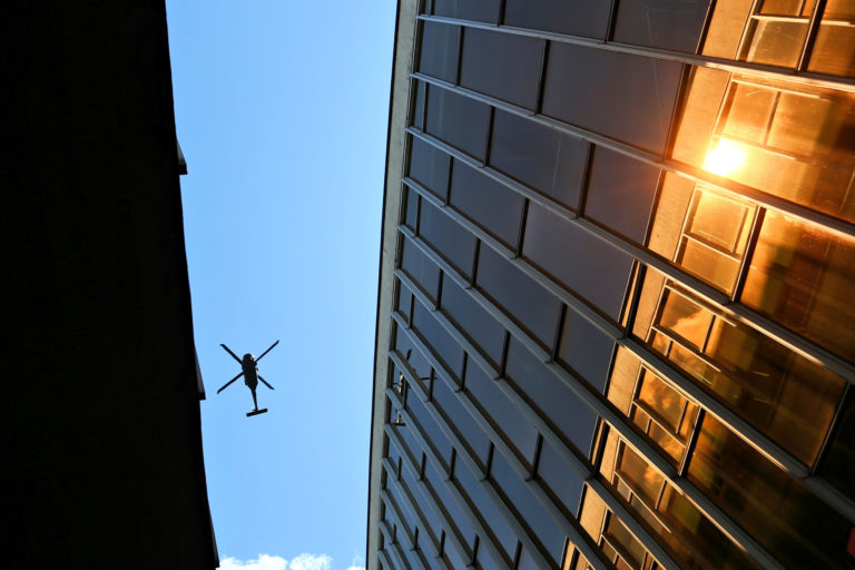 Prelet vrtuľmíkom pred začatím osláv 77. výročia Slovenského národného povstania (SNP) v Banskej Bystrici. Banská Bystrica, 29. august 2021. Foto: SITA/Peter Rusko
