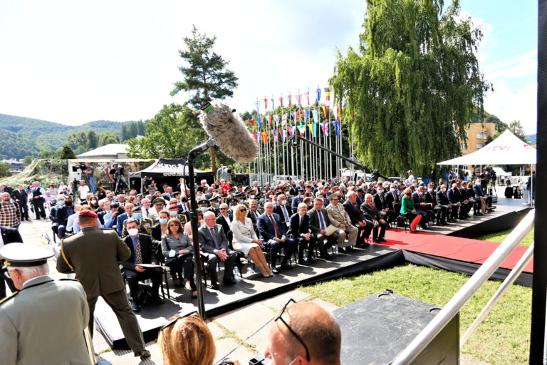 Účastníci počas osláv 77. výročia Slovenského národného povstania (SNP) v Banskej Bystrici. Banská Bystrica, 29. august 2021. Foto: SITA/Peter Rusko