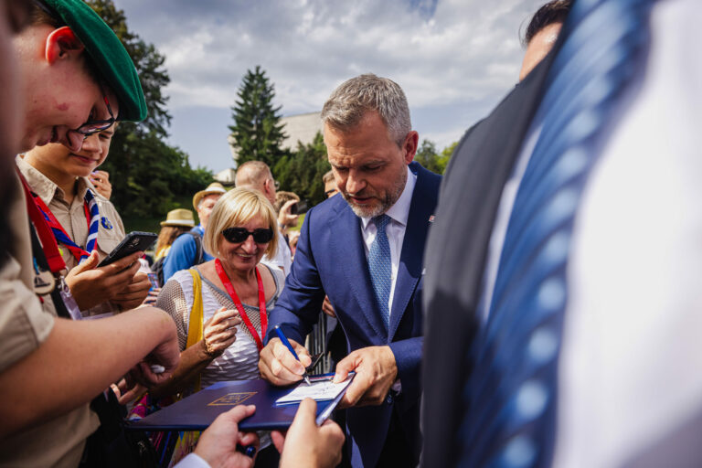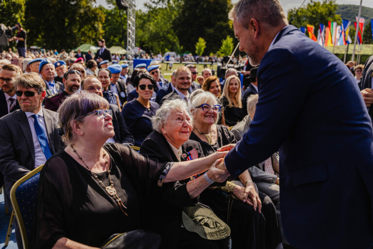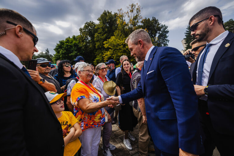 Prezident SR Peter Pellegrini počas osláv 81. výročia Slovenského národného povstania (SNP) v areáli Múzea SNP v Banskej Bystrici. Banská Bystrica, 29. august 2025. Foto: SITA/Kancelária prezidenta SR