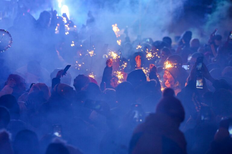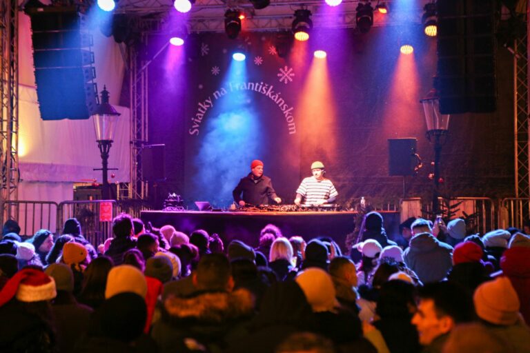 Atmosféra počas osláv príchodu Nového roka 2025 a Dňa vzniku Slovenskej republiky na Františkánskom námestí v Bratislave. Bratislava, 1. január 2025. Foto: SITA/Tomáš Susko.