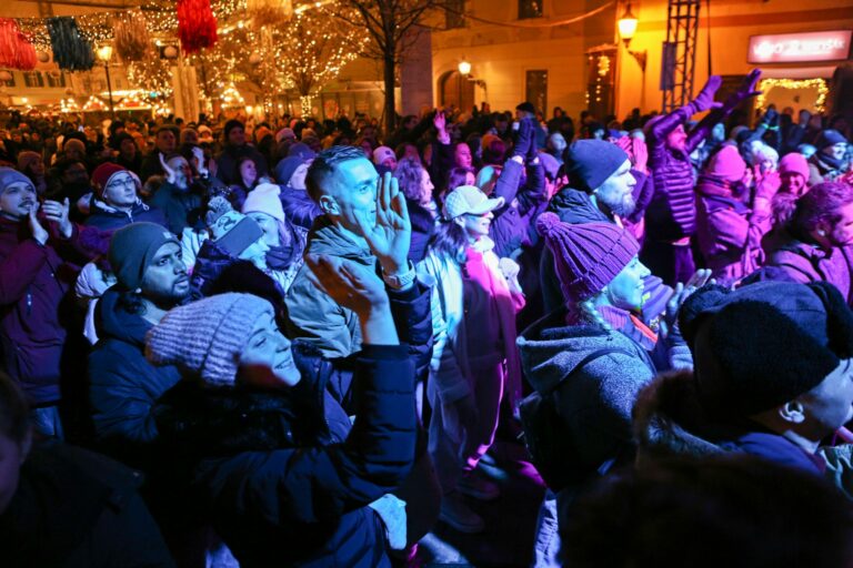 Atmosféra počas koncertu Malalata v rámci osláv príchodu Nového roka 2025 a Dňa vzniku Slovenskej republiky na Františkánskom námestí v Bratislave. Bratislava, 1. január 2025. Foto: SITA/Tomáš Susko.