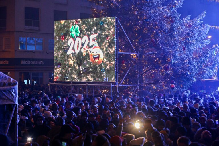 Atmosféra počas osláv príchodu Nového roka 2025 a Dňa vzniku Slovenskej republiky na Hviezdoslavovom námestí v Bratislave. Bratislava, 1. január 2025. Foto: SITA/Tomáš Susko.
