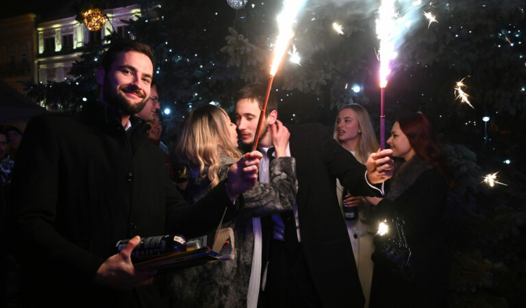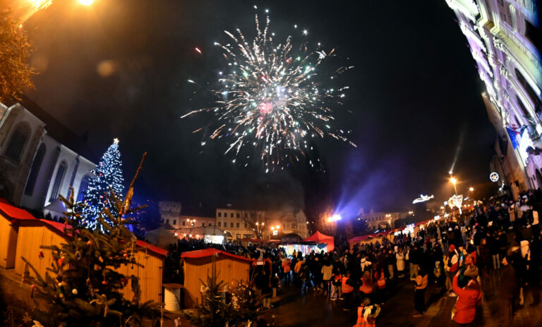Atmosféra počas osláv príchodu Nového roka 2025 a Dňa vzniku Slovenskej republiky na Hlavnej ulici v Prešove. Prešov, 1. január 2025. Foto: SITA/Viktor Zamborský.