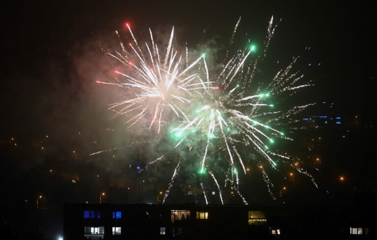Ohňostroj počas osláv príchodu Nového roka 2025 a Dňa vzniku Slovenskej republiky na Sídlisku III v Prešove. Prešov, 31. december 2024. Foto: SITA/Viktor Zamborský.
