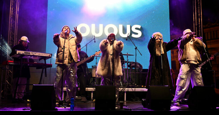 Koncert skupiny OUOUS počas osláv príchodu Nového roka 2025 a Dňa vzniku Slovenskej republiky na Sídlisku III v Prešove. Prešov, 31. december 2024. Foto: SITA/Viktor Zamborský.