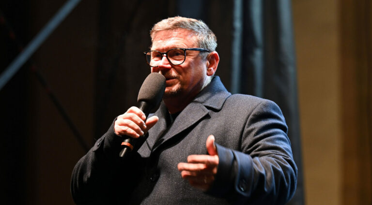 Primátor Prešova František Oľha počas osláv príchodu Nového roka 2025 a Dňa vzniku Slovenskej republiky na Hlavnej ulici v Prešove. Prešov, 1. január 2025. Foto: archívne, SITA/Viktor Zamborský.