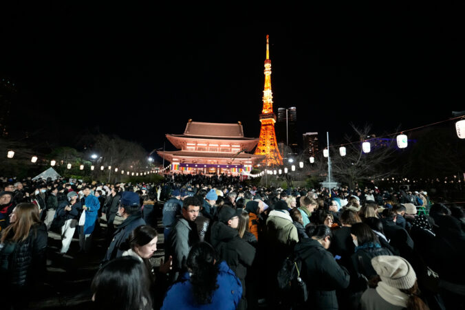 Ľudia sa zhromaždili, aby oslávili Nový rok v budhistickom chráme Zojoji v stredu 31. decembra 2025 v Tokiu. Foto: SITA/AP