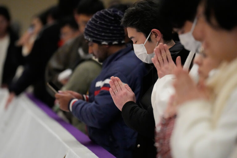 Ľudia sa modlia v budhistickom chráme Zojoji na Silvestra v stredu 31. decembra 2025 v Tokiu. Foto: SITA/AP