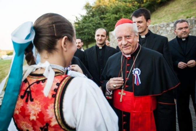 Bratislavský arcibiskup Stanislav Zvolenský počas príchodu na slávnostný program Celonárodných osláv pri príležitosti 1161. výročia príchodu sv. Cyrila a Metoda na územie dnešného Slovenska na Hrade Devín. Bratislava, 5. júl 2024. Foto: SITA