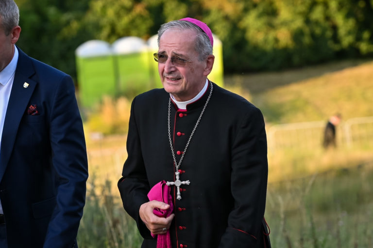 Bratislavský arcibiskup Stanislav Zvolenský počas príchodu na slávnostný program Celonárodných osláv pri príležitosti 1161. výročia príchodu sv. Cyrila a Metoda na územie dnešného Slovenska na Hrade Devín. Bratislava, 5. júl 2024. Foto: SITA