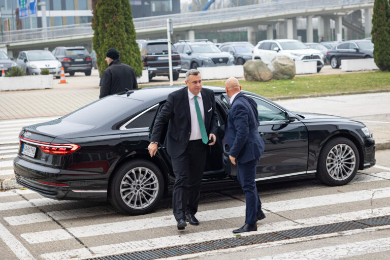 Podpredseda Národnej rady SR a predseda Slovenskej národnej strany (SNS) Andrej Danko (uprostred) počas príchodov v rámci osláv strany Smer - sociálna demokracia pri príležitosti 25. výročia založenia strany. Bratislava, 17. november 2024. Foto: SITA/Jana Birošová