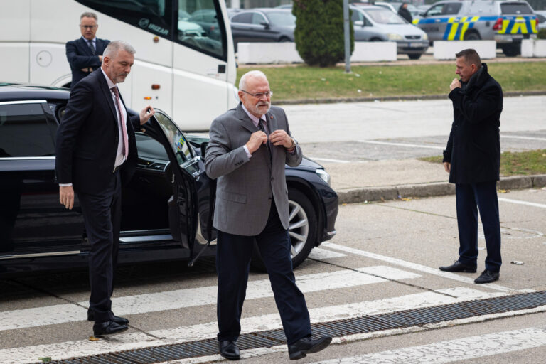 Bývalý prezident SR Ivan Gašparovič (druhý sprava) počas príchodov na oslavy strany Smer - sociálna demokracia pri príležitosti 25. výročia založenia strany. Bratislava, 17. november 2024. Foto: SITA/Jana Birošová