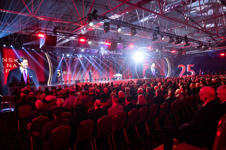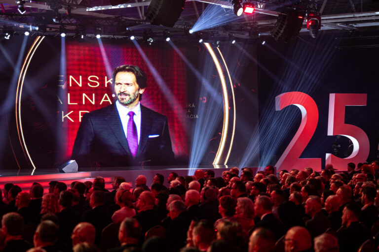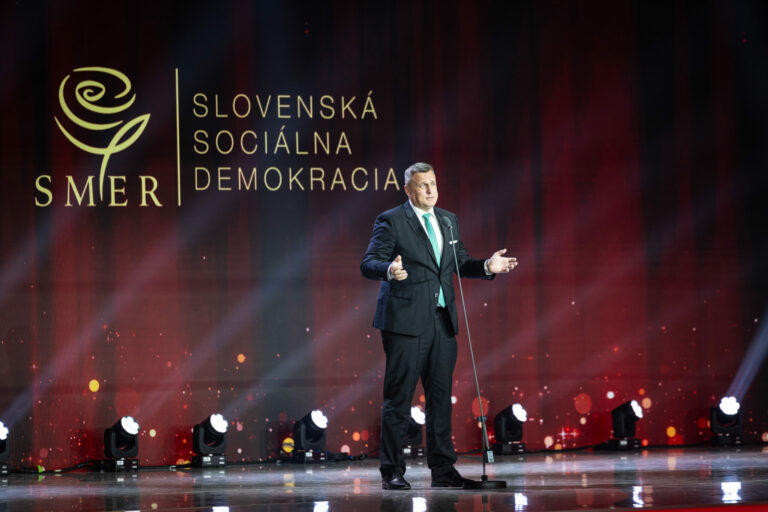 Predseda strany Slovenskánárodná strana (SNS) Andrej Danko počas osláv strany Smer - sociálna demokracia pri príležitosti 25. výročia založenia strany. Bratislava, 17. november 2024. Foto: SITA/Jana Birošová