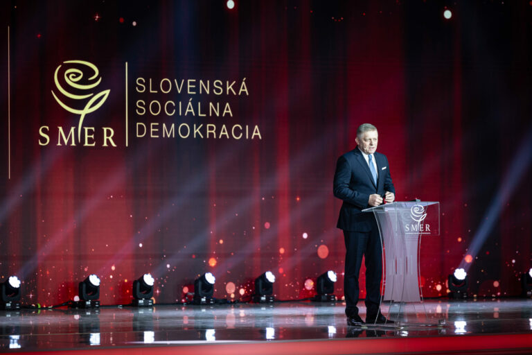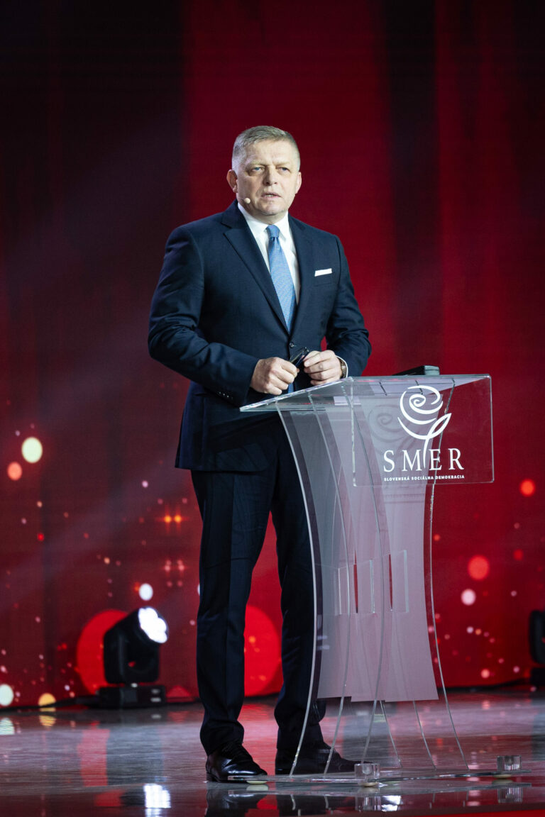 Predseda strany SMER-SD Robert Fico počas osláv strany Smer - sociálna demokracia pri príležitosti 25. výročia založenia strany. Bratislava, 17. november 2024. Foto: SITA/Jana Birošová