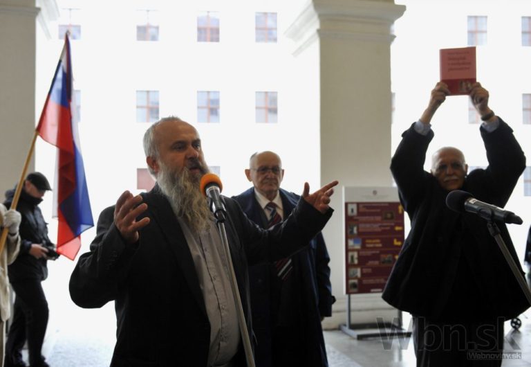 Zľava: Historici Martin Homza a Matúš Kučera a spisovateľ Drahoslav Machala počas predstavenia knihy Svätopluk v európskom písomníctve.v rámci osláv Ústavy SR v areáli Bratislavského hradu, ktoré organizuje Matica slovenská. Bratislava, 1. september 2014. Foto: SITA/Ján Slovák
