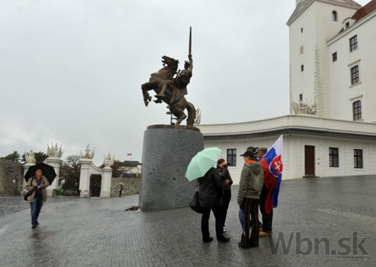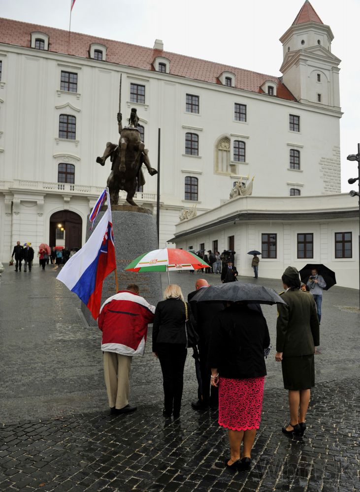 Oslavy Ústavy SR pre nepriazeň počasia presunula Matica slovenská spod sochy kráľa Svätopluka do brány Bratislavského hradu. Bratislava, 1. september 2014. Foto: SITA/Ján Slovák