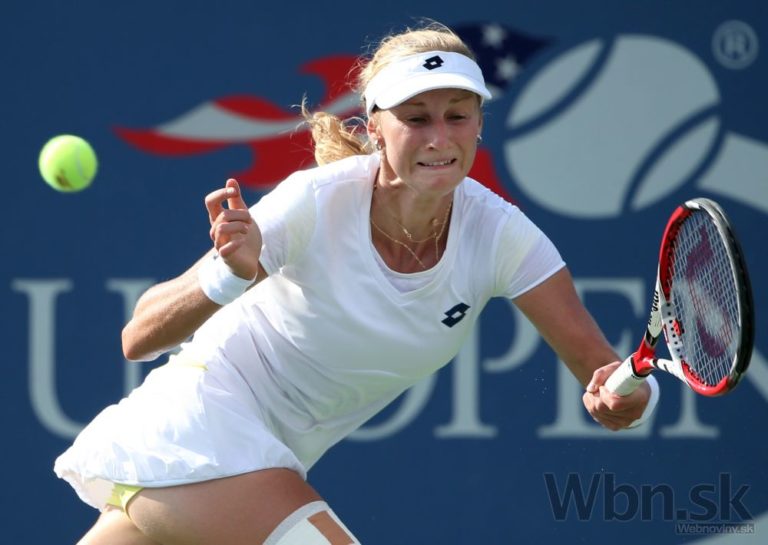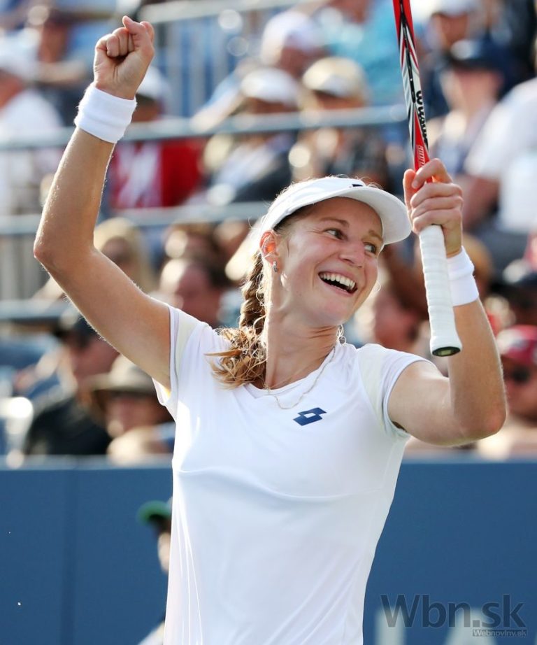 Aleksandra Kruničová počas osemfinálového zápasu na US Open, v ktorom prehrala s Bieloruskou Viktoriou Azarenkovou 4:6, 6:4, 6:4.