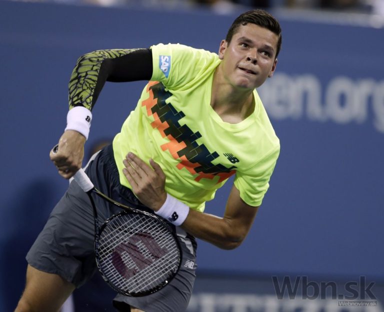 Kanadský tenista Milos Raonic počas osemfinálového zápasu na US Open v ktorom prehral s Japoncom Keiom Nishikorim 4:6, 7:6 (7:4), 6:7 (6:8), 7:5, 6:4. Foto: SITA/AP