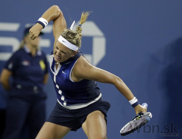 Bieloruska Viktoria Azarenková počas osemfinálového zápasu na US open, v ktorom vyhrala nad Aleksandrou Kruničovou 4:6, 6:4, 6:4. Foto: SITA/AP