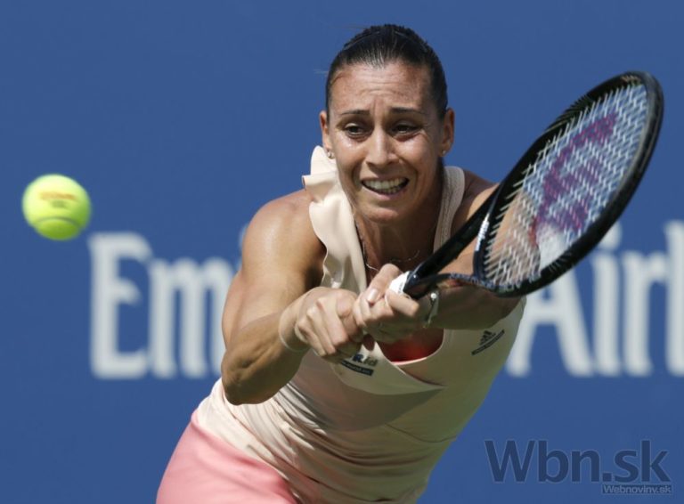 Talianska tenistka Flavia Pennettová počas osemfinálového zápasu na US Open, v ktorom porazila Austrálčanku Casey Dellacquovú 7:5, 6:2. Foto: SITA/AP