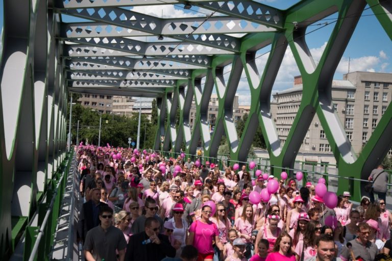 Účastníci 8. ročníka charitatívneho podujatia AVON Pochod proti rakovine prsníka. Bratislava, 18. jún 2016. Foto: SITA/Marek Mrviš