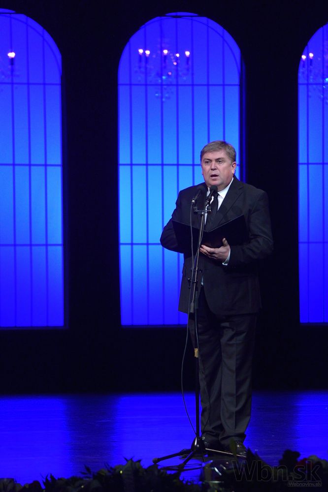 Riaditeľ Sľuku Juraj Hamar počas poslednej rozlúčky so zosnulým režisérom Martinom Ťapákom v SND. Bratislava, 6. február 2015. Foto: SITA/Robert Tappert