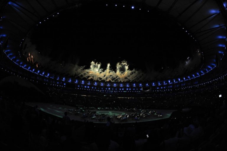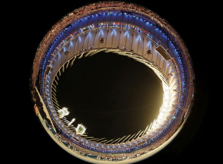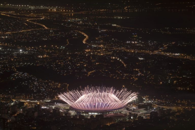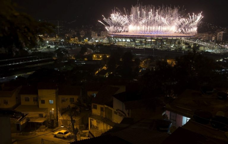 Ohňostroj po defilé športovcov počas otváracieho ceremoniálu OH 2016. Rio de Janeiro, 5. august 2016. Foto: SITA/AP